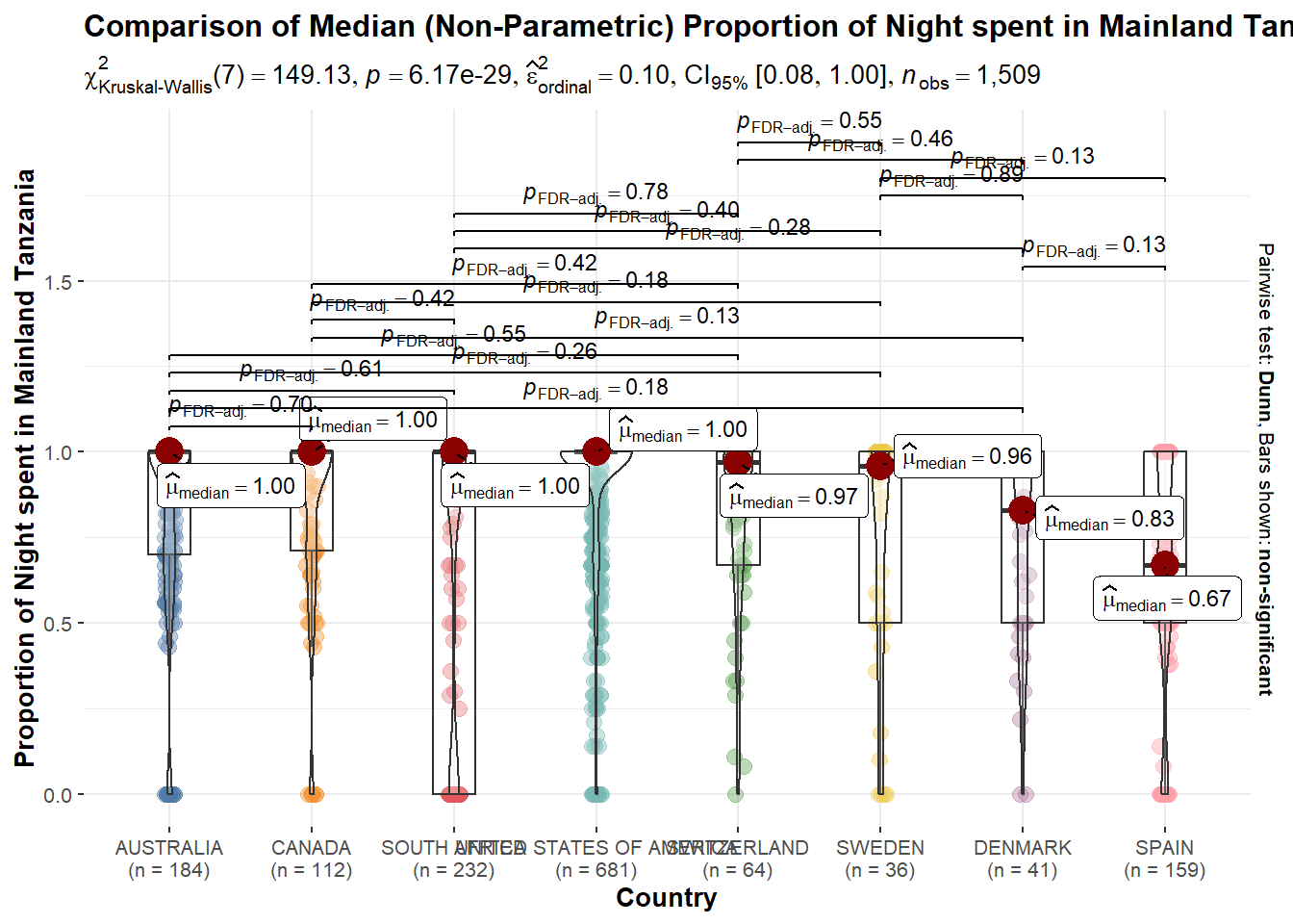 plot_ANOVA_country(metric = "prop_night_spent_mainland", selected_countries = top8, testtype = "np", pair = "ns", conf = 0.95)