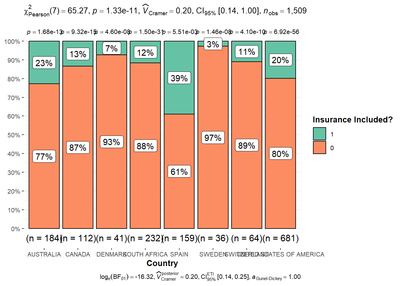 plot_barstats_country(metric = "package_insurance", selected_countries = top8, testtype = "np", conf = 0.95)